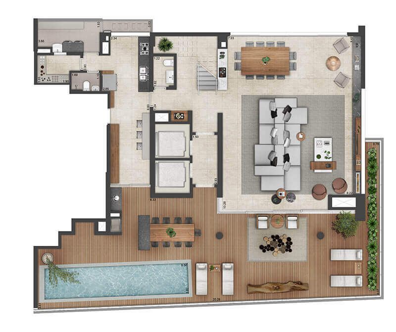 - Piscina com Bar com serviço de garçom, treinado pelo Fasano