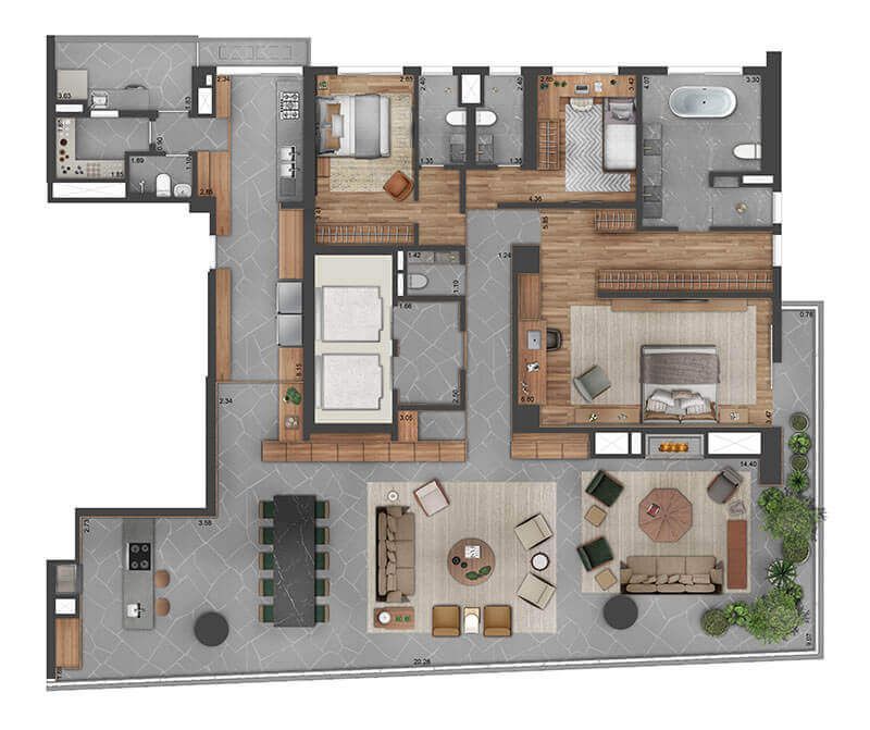 Os Apartamentos de Alto Padrão no Itaim possui Plantas com 288 m² e já está pronto para morar.