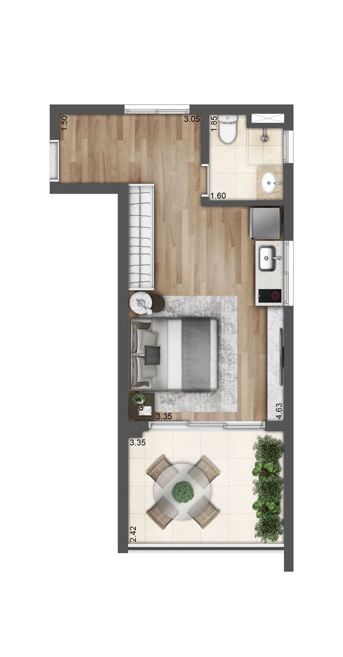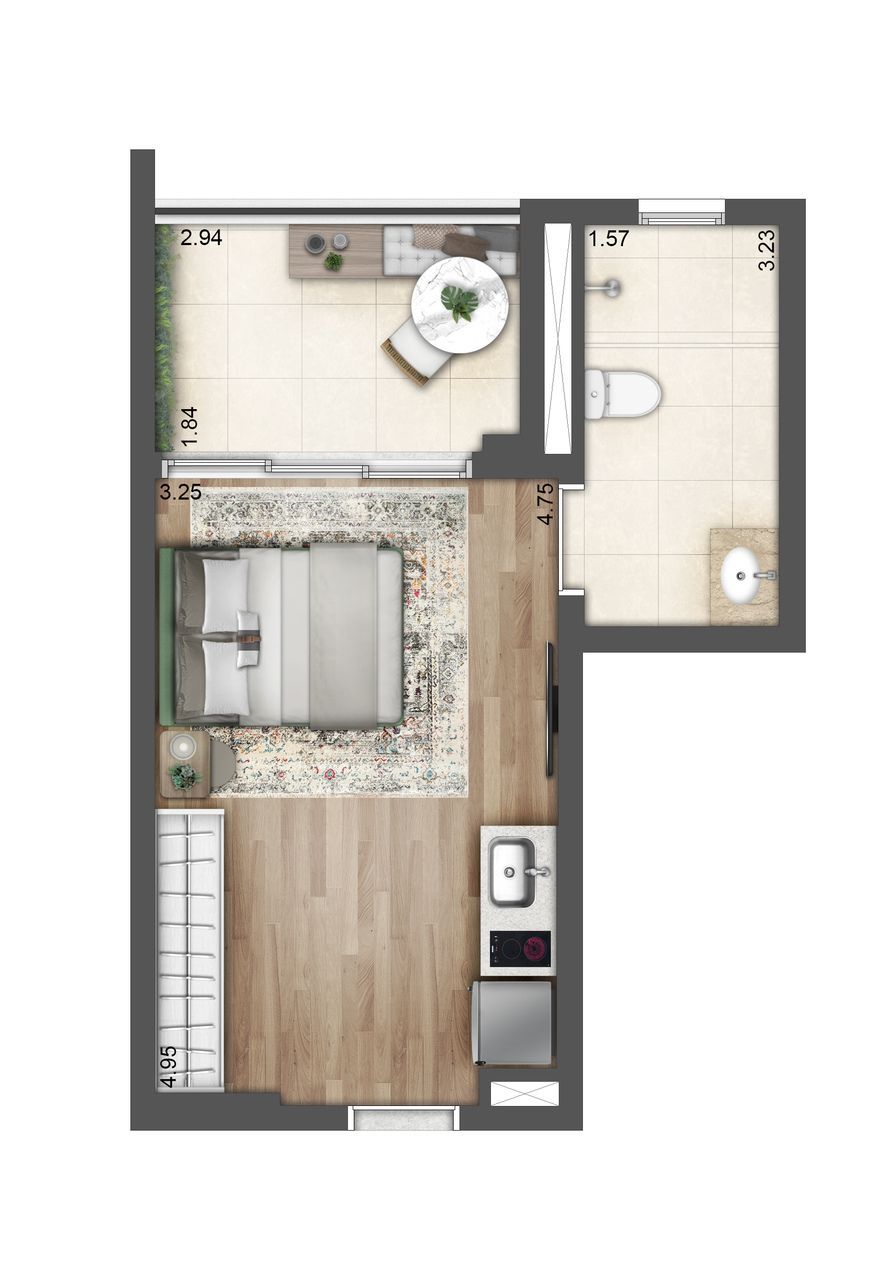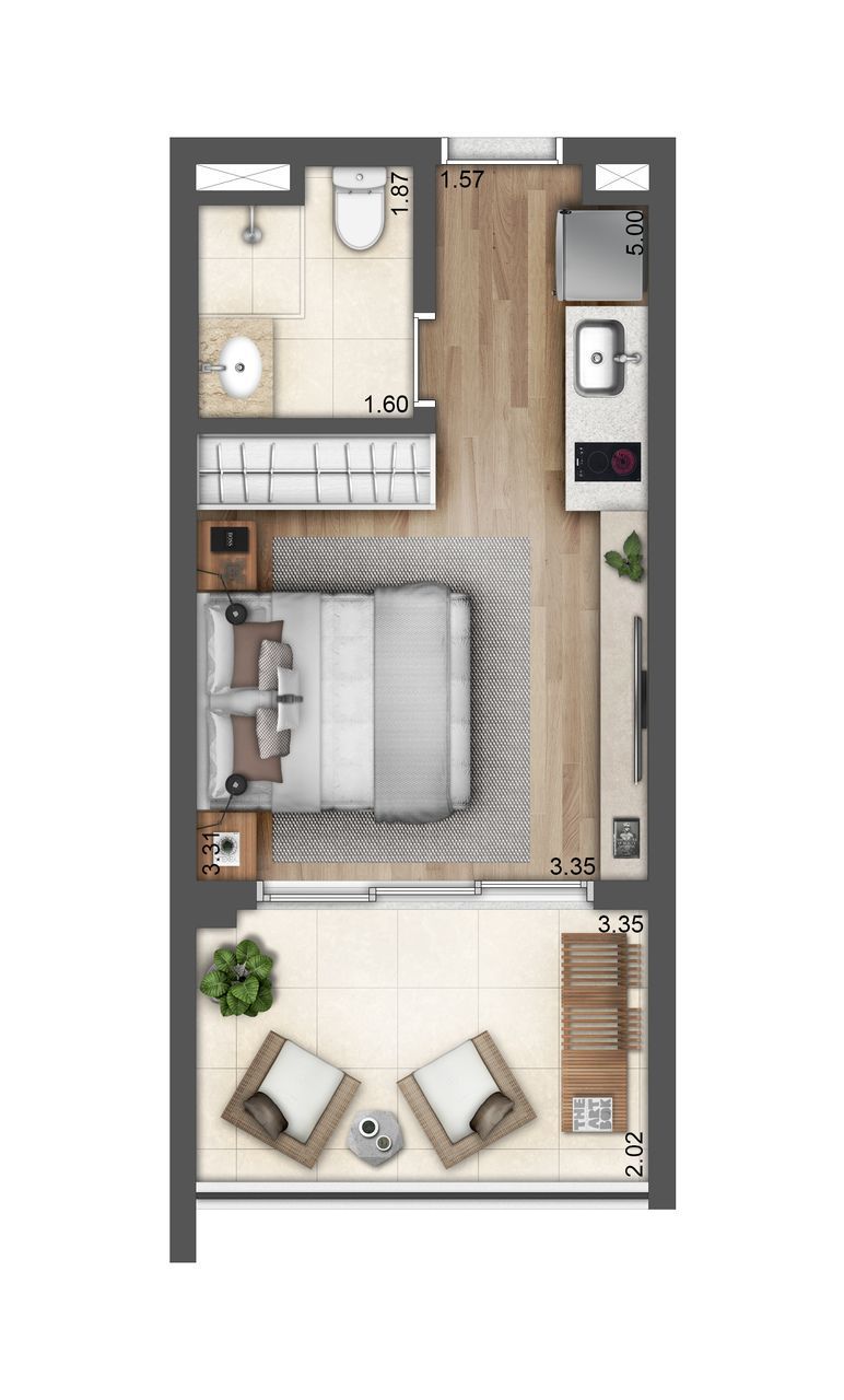 Studios de 28, 32 e 37 m²